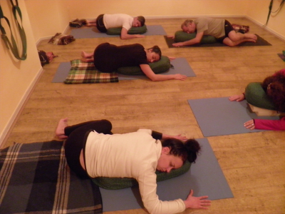 Bharadvajasana su bolster